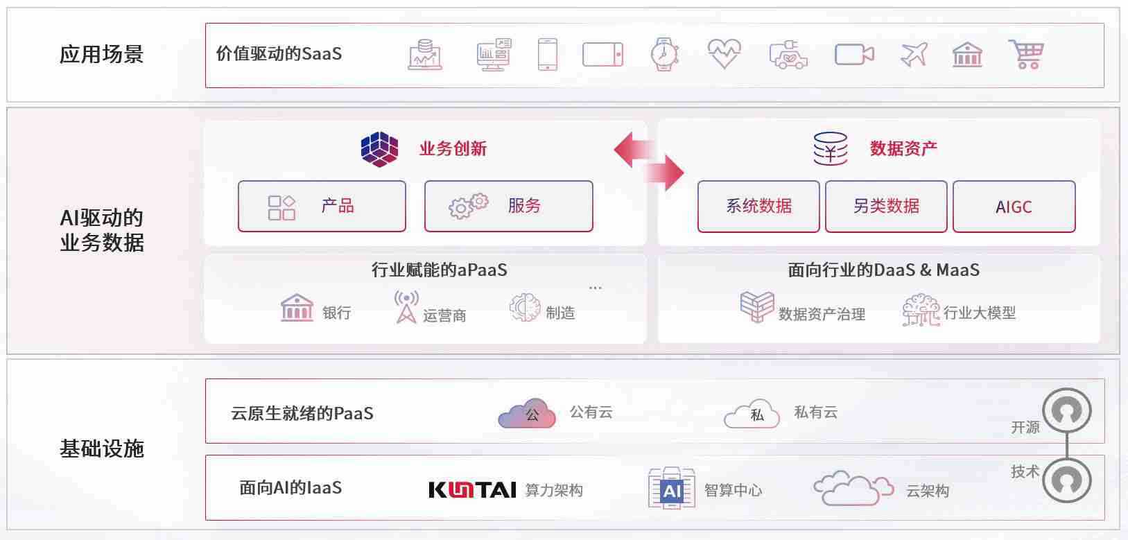 数字时代,,围绕企业数字化转型的关键要素,,234钱包数码开创性的提出数云融合战略和技术体系框架,,着力在云原生、、、数字原生、、AI原生和信创产业上架构产品和服务能力,,为处在不同数字化转型阶段的快消零售、、汽车、、、金融、、、医疗、、、政企、、教育、、运营商等行业客户提供泛在的敏捷IT能力和融合的数据驱动能力,,,,构建跨界融合创新的数字业务场景和新业务模式,,,助力企业级客户建立面向未来的核心能力和竞争优势,,,,全面推动社会的数字化、、、、智能化转型升级。。。
